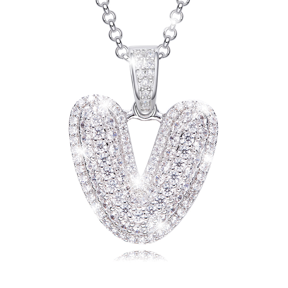 Halskette Zirkonia „Buchstabe V“ in Silber.