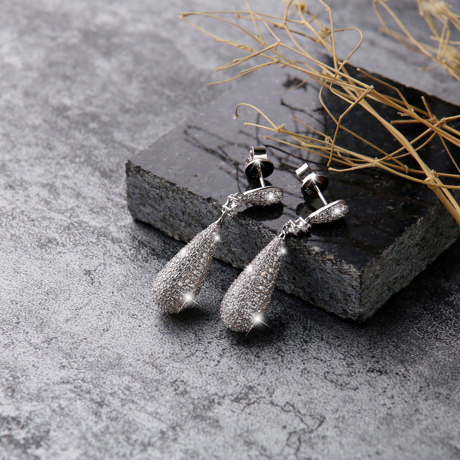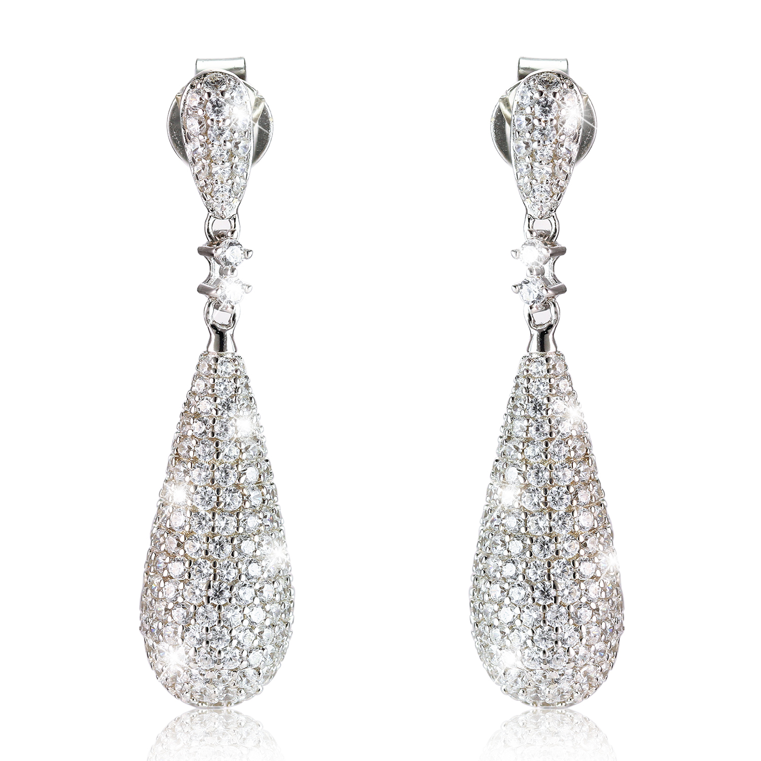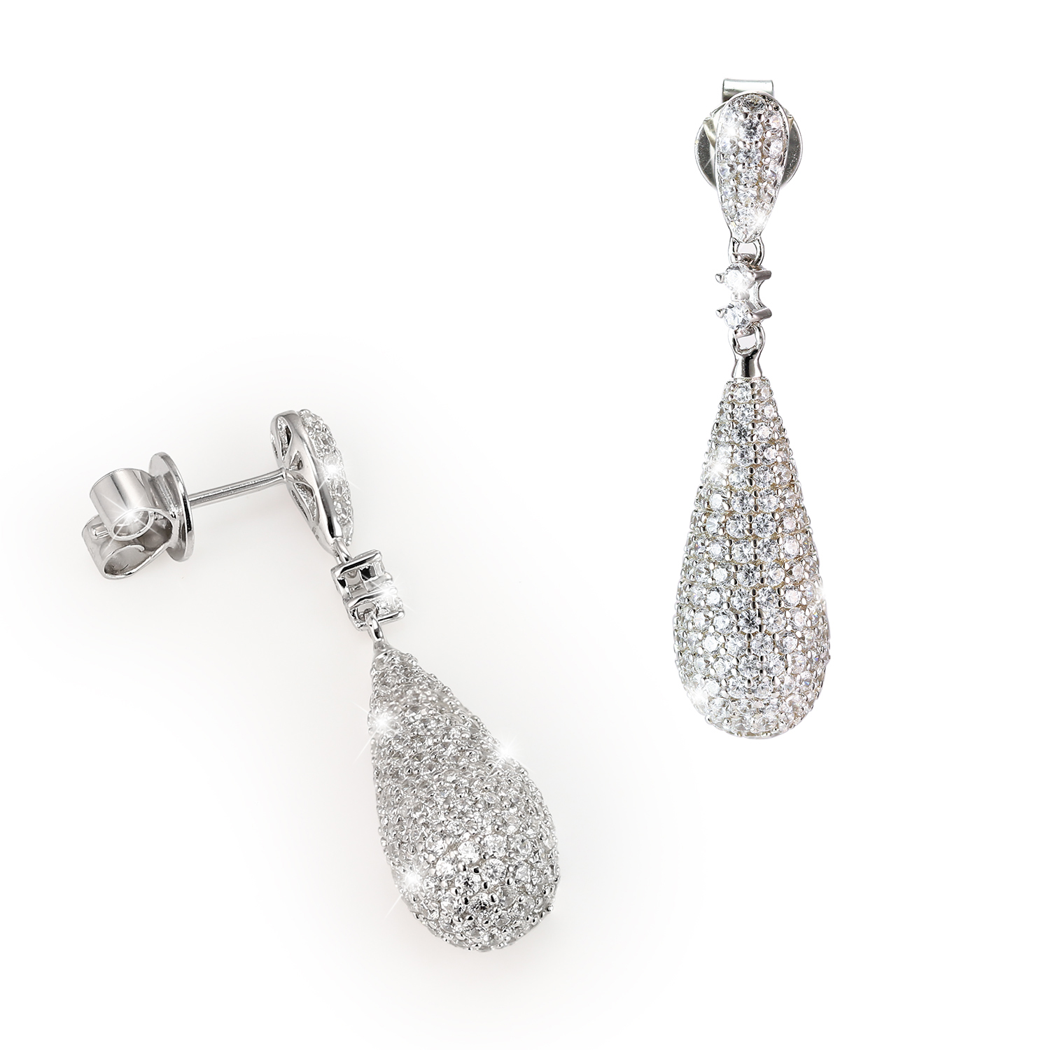 Die eleganten Ohrringe funkeln mit ihren kristallklaren Zirkonia Steinchen wie ein Spiegel aus Diamanten. Hier ist ihnen ein glanzvoller Auftritt garantiert. Holen Sie sich ein Hauch von Luxus direkt nach Hause! Perfekt kombinierbar zu Jeans mit Pulli oder zum klassischen Minirock für die nächste Party. Diese wunderschönen Ohrringe komplementieren einfach jedes Outfit.
