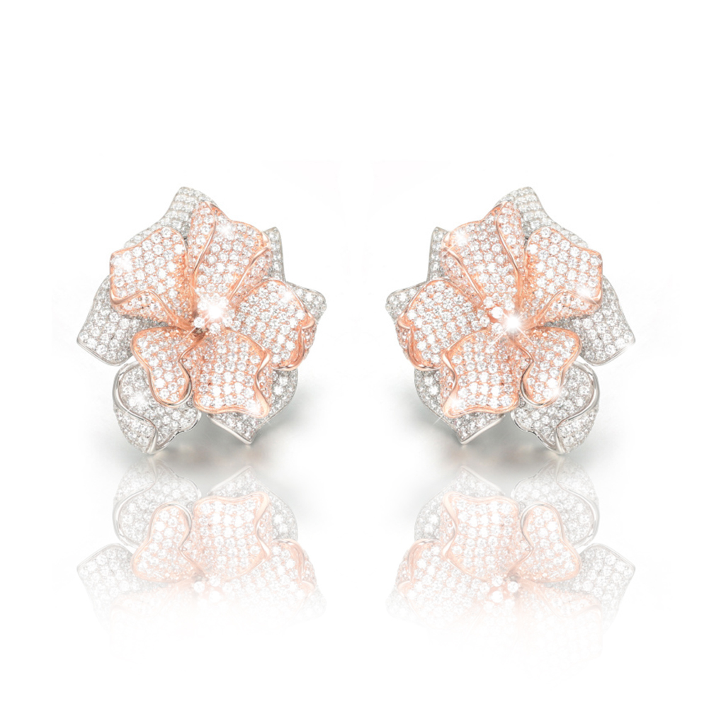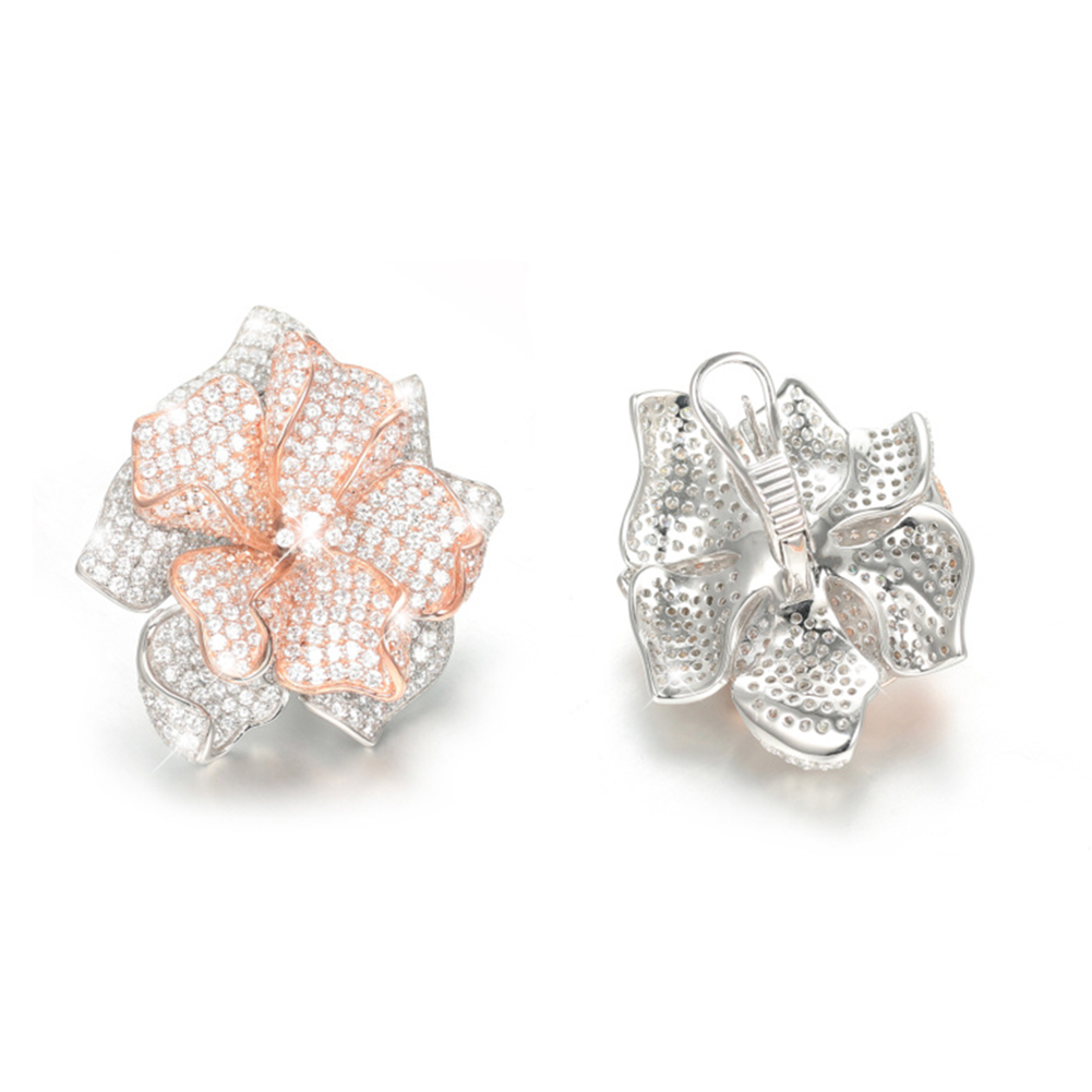 Diese Ohrstecker gehören ganz klar in die Kategorie „Luxusschmuck“. Geformt im aufwendigen Stil einer Blume mit zahlreichen Zirkonia in 5A Qualität, verzaubern Sie mit einem Mix aus Silber und Roségold Ihre Trägerin.