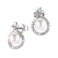 Die eleganten Ohrstecker stehen für echten Luxus. Eine Süßwasserperle wird umreiht von funkelnden 5A Zirkonia Steinchen, die diesem Design modische Eleganz und Einzigartigkeit verleihen.
