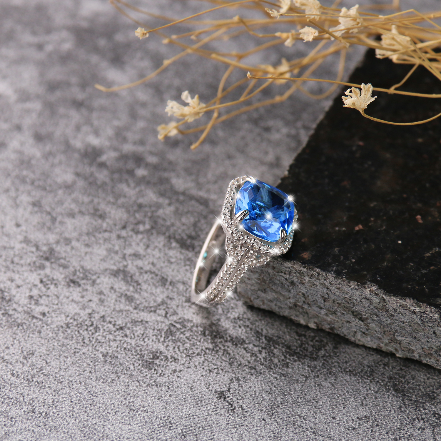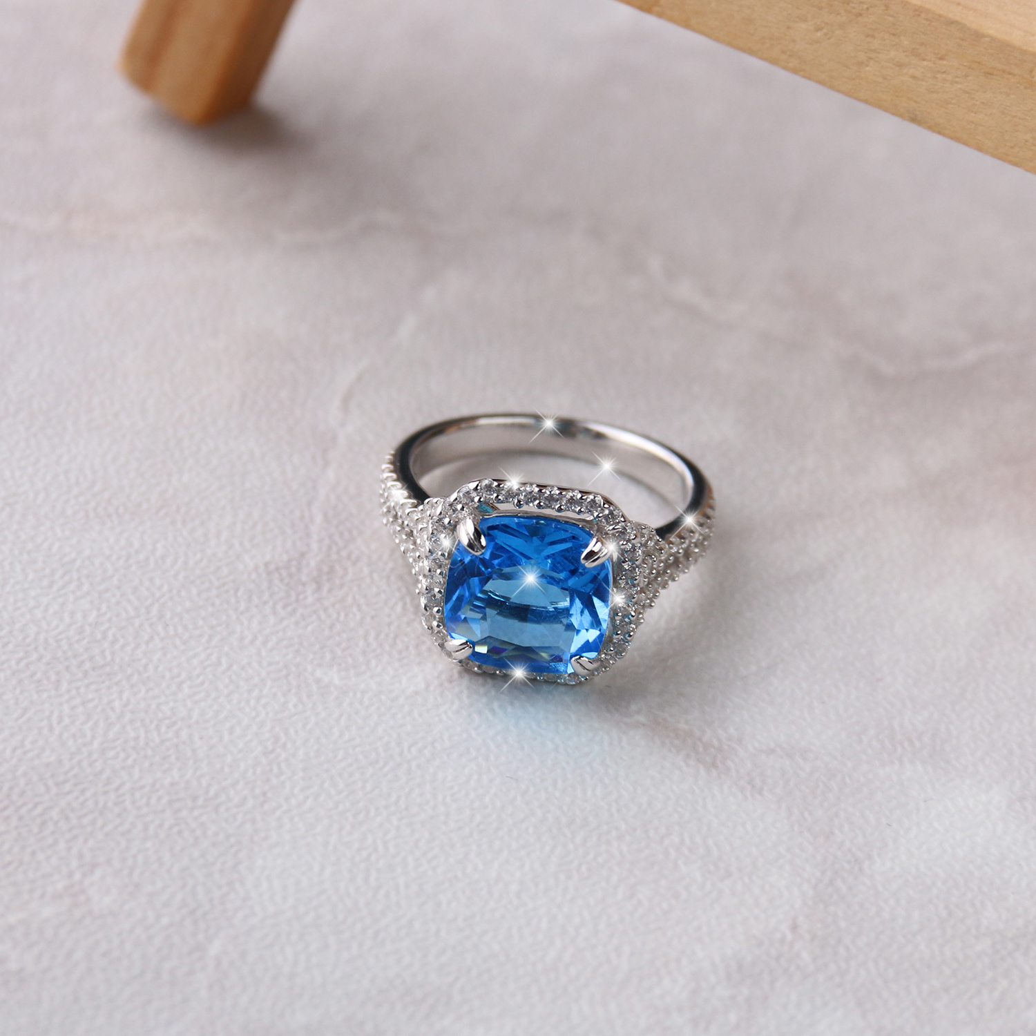 In diesem Ring ist ein wunderschöner blauer Zirkonia eingefasst.